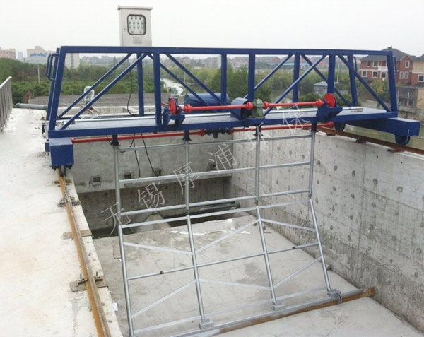 该设备由护栏、刮泥桁架、刮泥耙及导轨、刮泥桥、行走轮、轨道、提升机构、驱动机轮等组成。